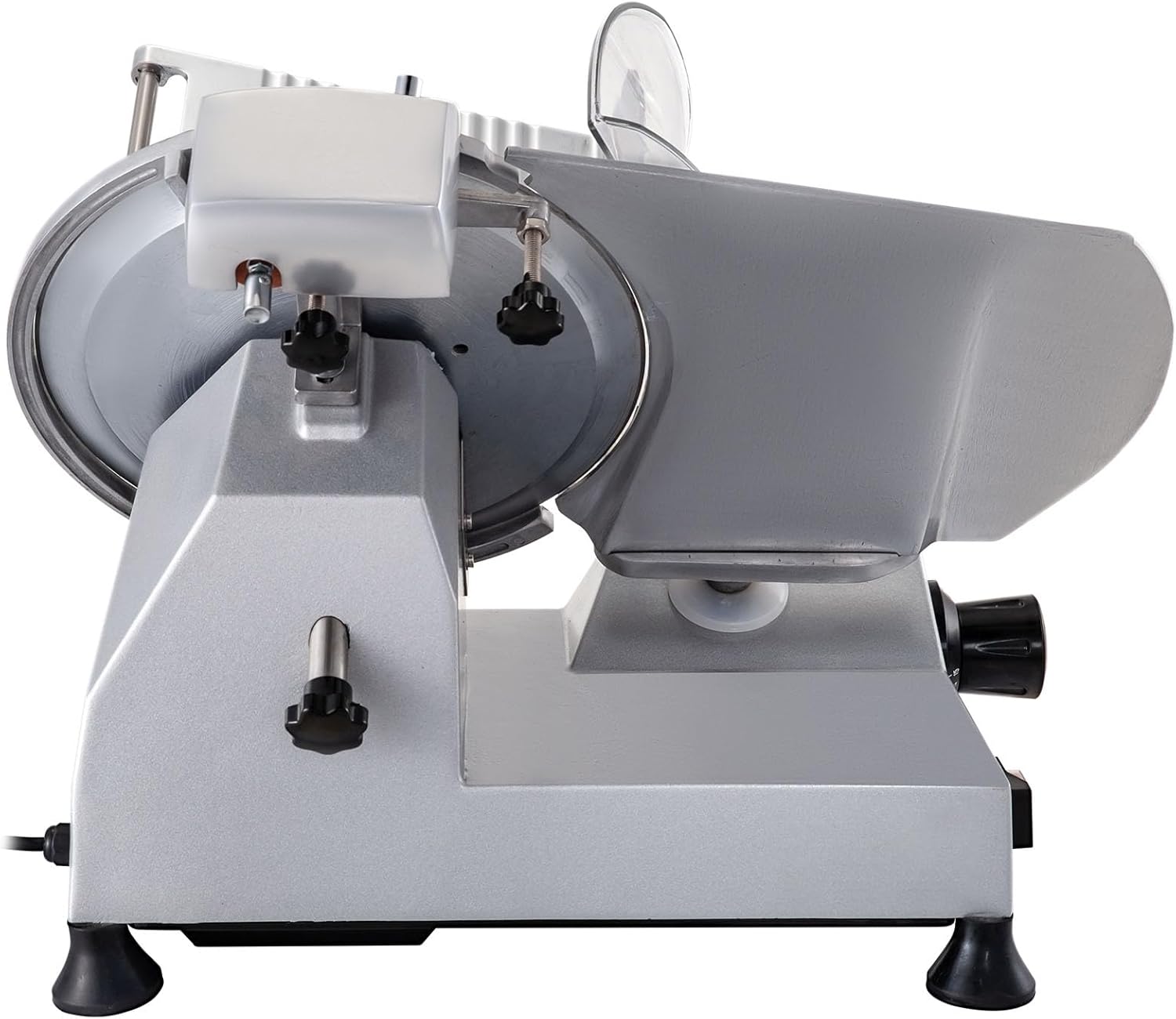 Durable Construction: This commercial meat slicer is constructed with a cast aluminum body and a 12-inch diameter chrome-plated steel blade, ensuring rust-proof, corrosion-proof performance, sharper cutting, and long-lasting, heavy-duty use. Additionally, the blade and safety baffle feature a detachable design, allowing you to effortlessly disassemble and clean the components.