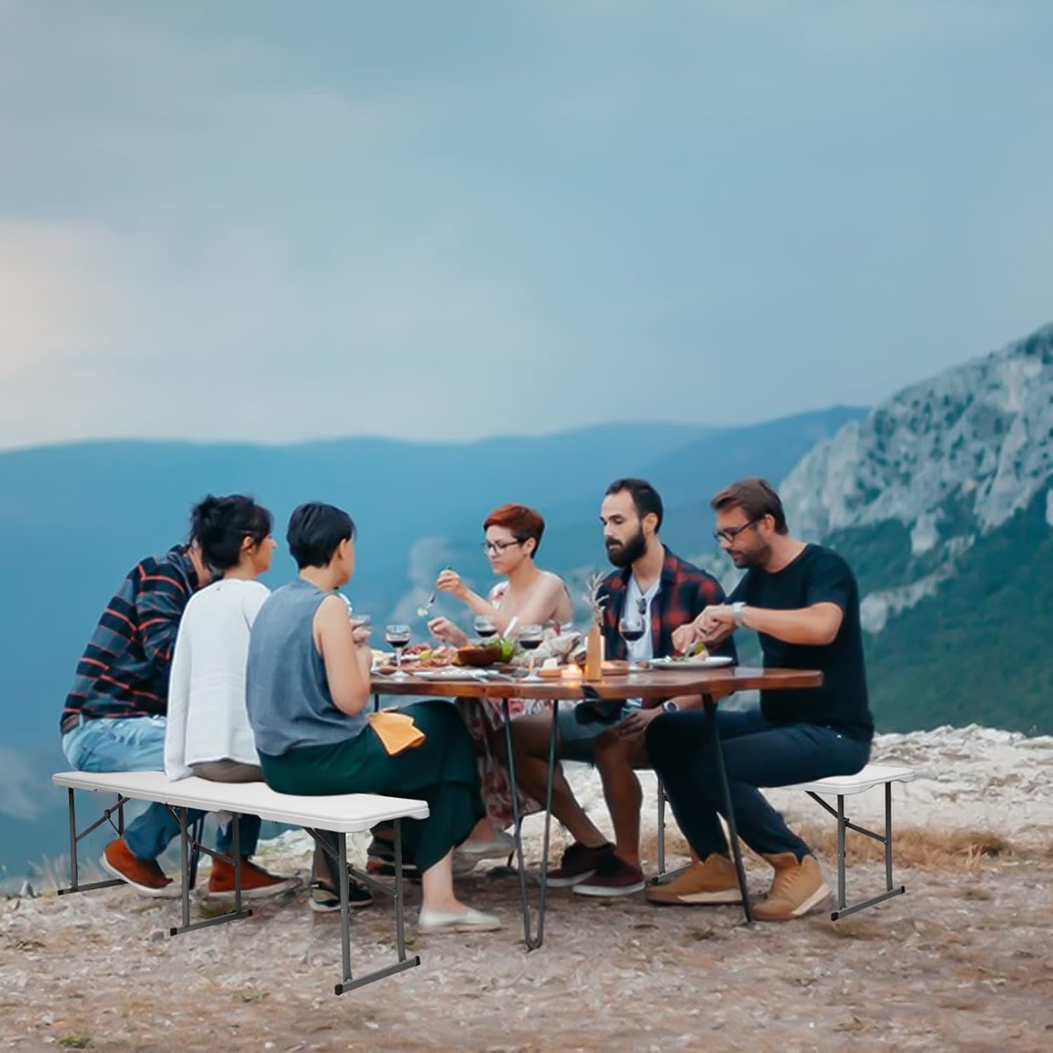 Multipurpose: This stylish and simple bench can be paired with a 6-foot folding table, suitable for indoor, outdoor, commercial, and various entertainment uses, such as home, restaurant, hotel, church, party, wedding, soccer game, etc.
