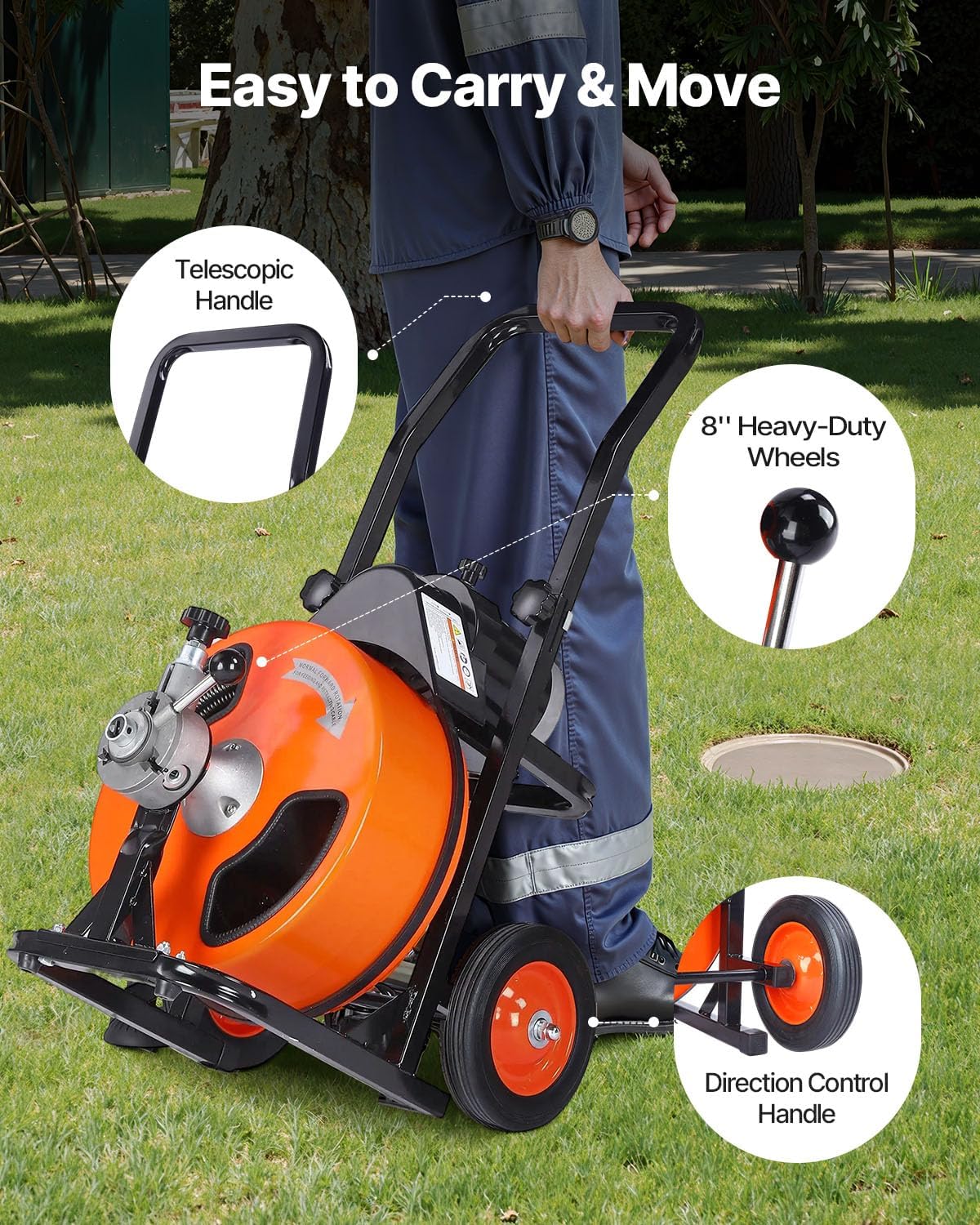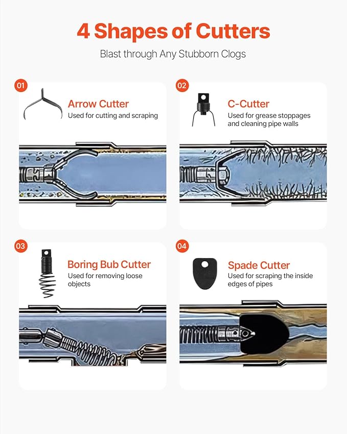 Limpiador de tubos con barrena y pedal VEVOR